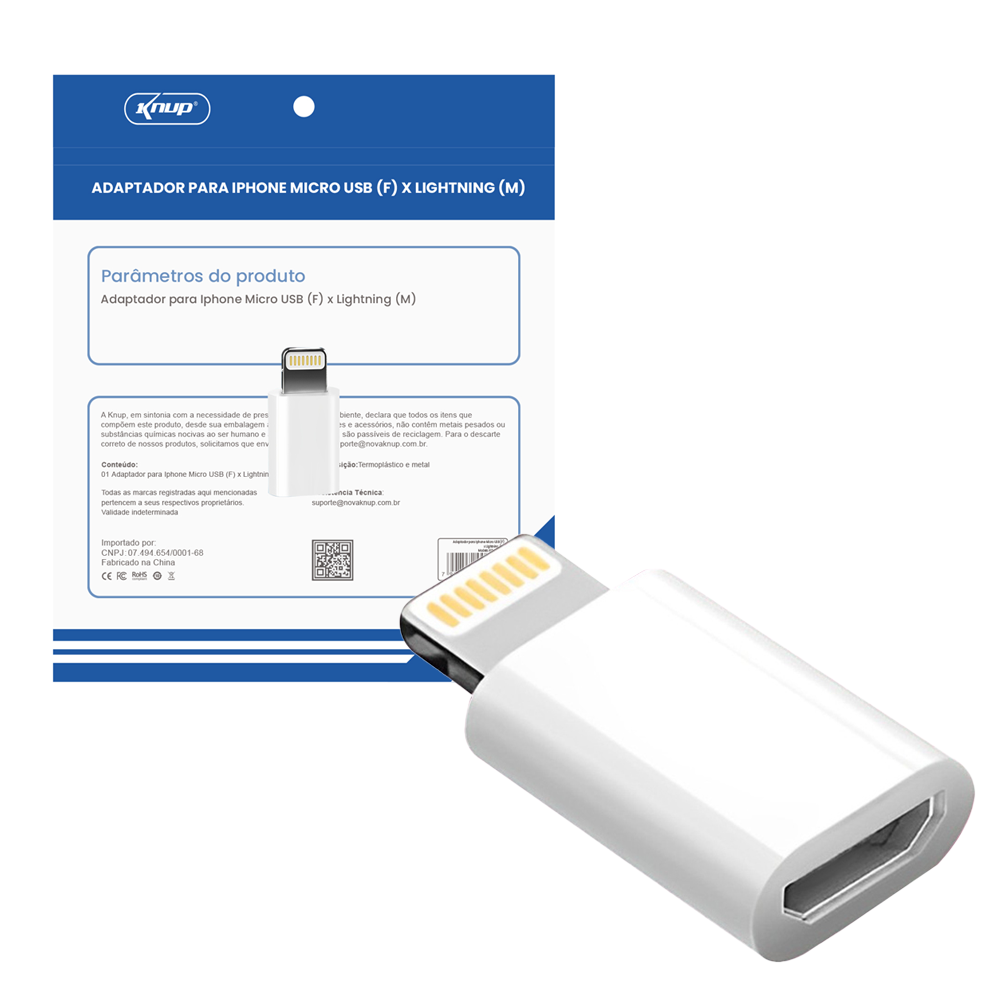 • Adaptador micro usb femea para lightning macho iphone este é um adaptador que permite carregar ou usar o cabo de dados em um iphone, permitindo transmissão de dados ou carregamento.
