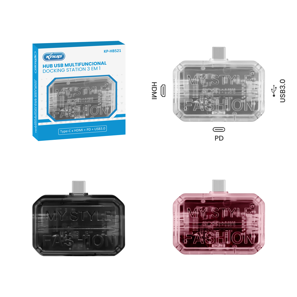 • Expansão USB 3.0 • Plug and play • Type-C x HDMI + PD + USB3.0, HDMI (4K@30hz), PD3.0(100W) USB3.0 (5Gbps)