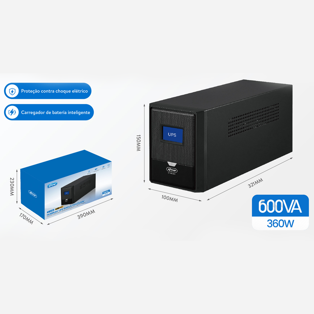 • Potência máxima: 600VA / 360W
