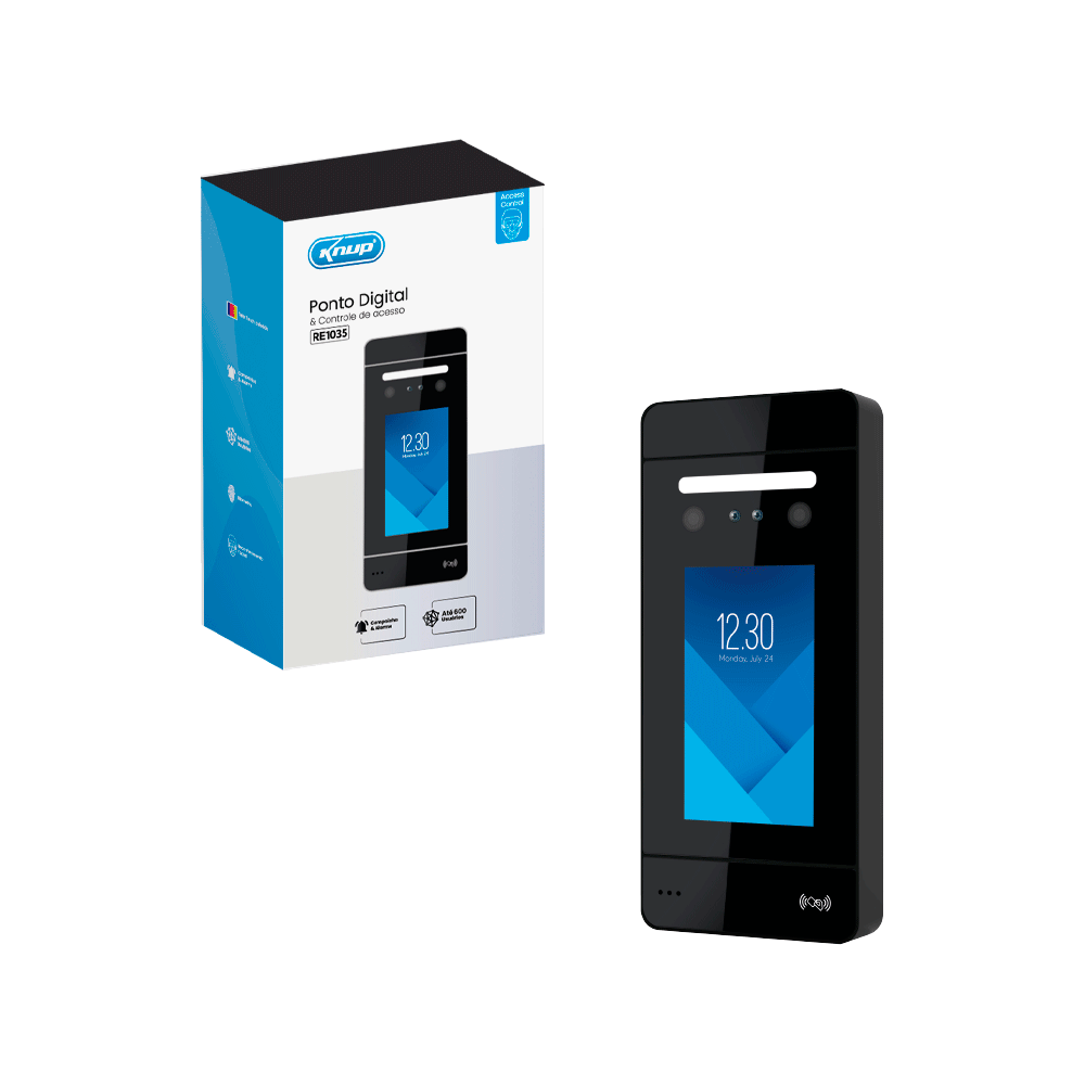 • Identificação por biometria, reconhecimento facial, senha, impressão digital e cartão