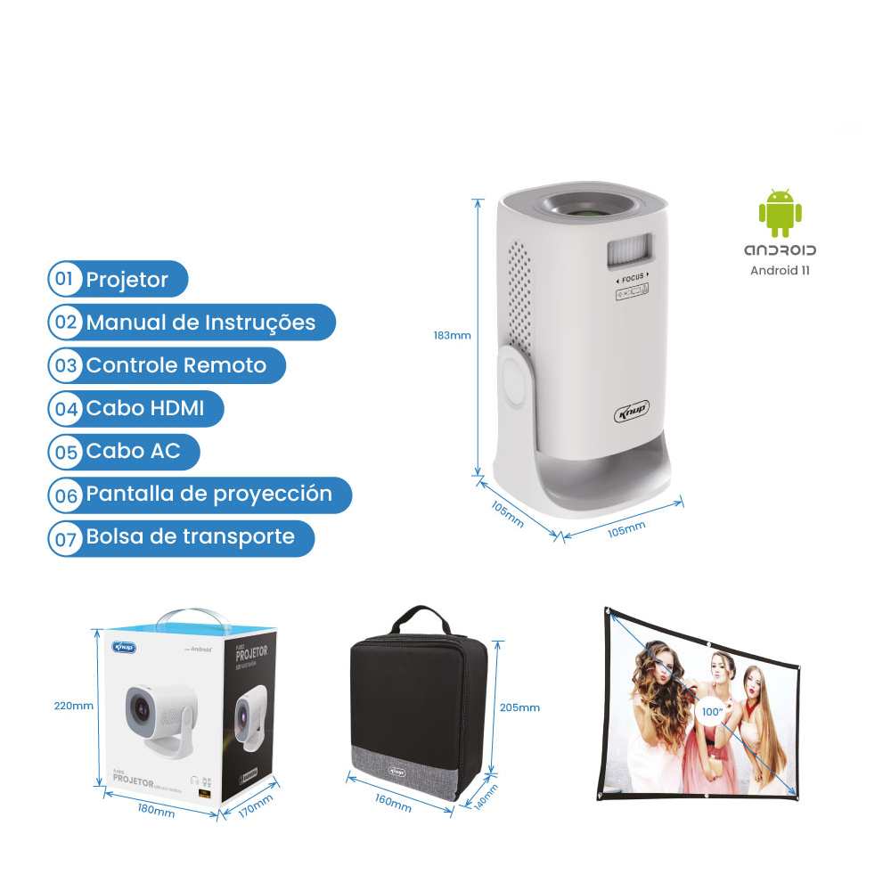 • Distância de projeção: 1 a 3 metros